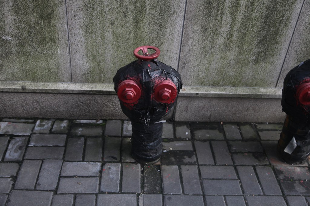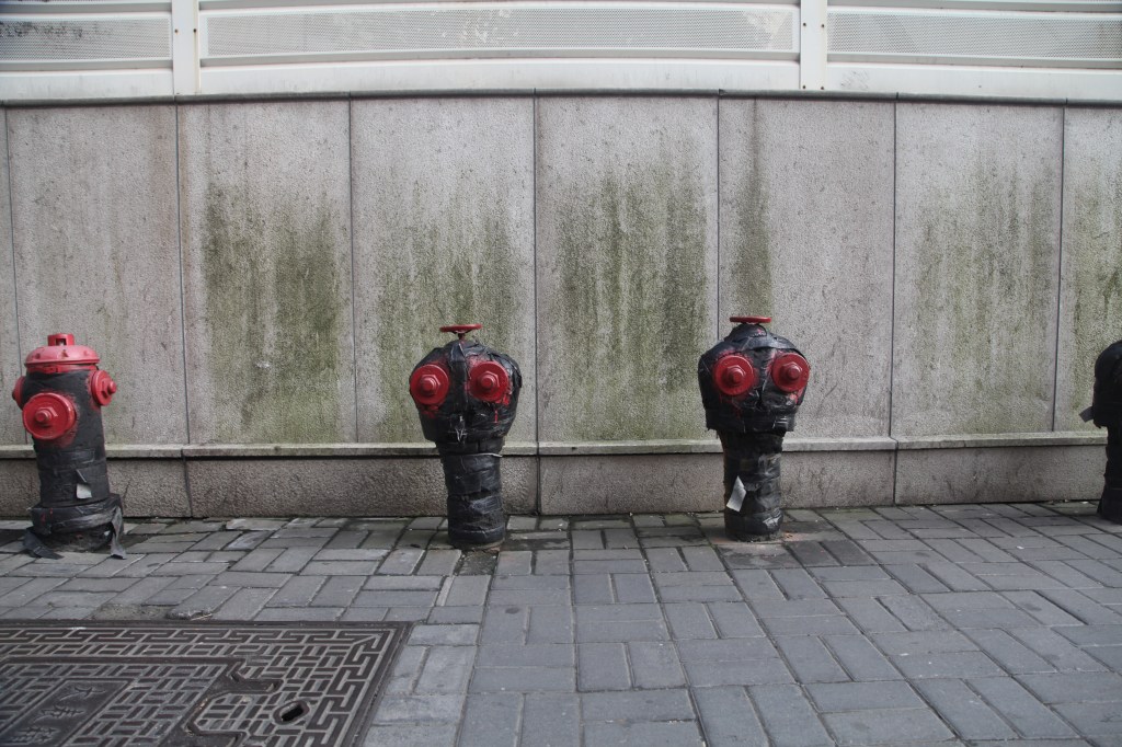 Compare the above post-hoc defensive measures with the apparent durability that’s been built into this fire hydrant. Seemingly so robust (or at least robust-looking) as to have outlasted the surrounding buildings it was originally meant to protect, as it now sits as a stark reminder of a past age amidst a broad sidewalk in front of a hotel.