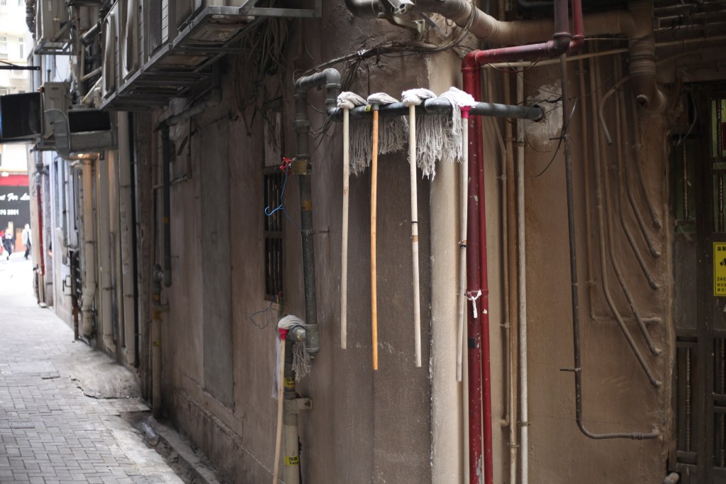 Hong Kong has a vibrant set of improvised solutions for outdoor tool storage. This originates in part from a general scarcity of space, but also from what feels like a higher-than-average level of care for a space’s cleanliness (even when not in the midst of a pandemic) and the desire to keep “clean” separate from “unclean.”