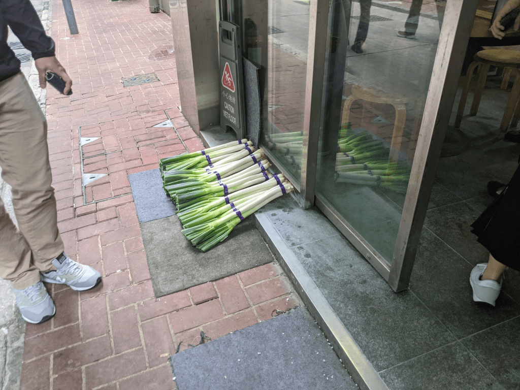 Arriving at the Shandong restaurant we set out for, our team was greeted by a (presumed) temporary storage solution for ingredients out front – in this case, what appear to be some sizable leeks. While this storage solution would perhaps double as an advertisement of freshness, it could form a different impression of ingredients’ cleanliness.