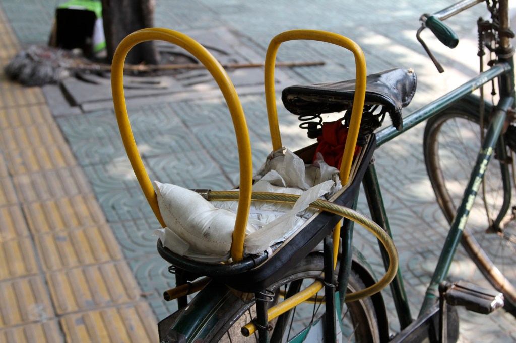 Seemingly formed from a single tube of metal. Something to lean on, something to hold, a pillow in-between.