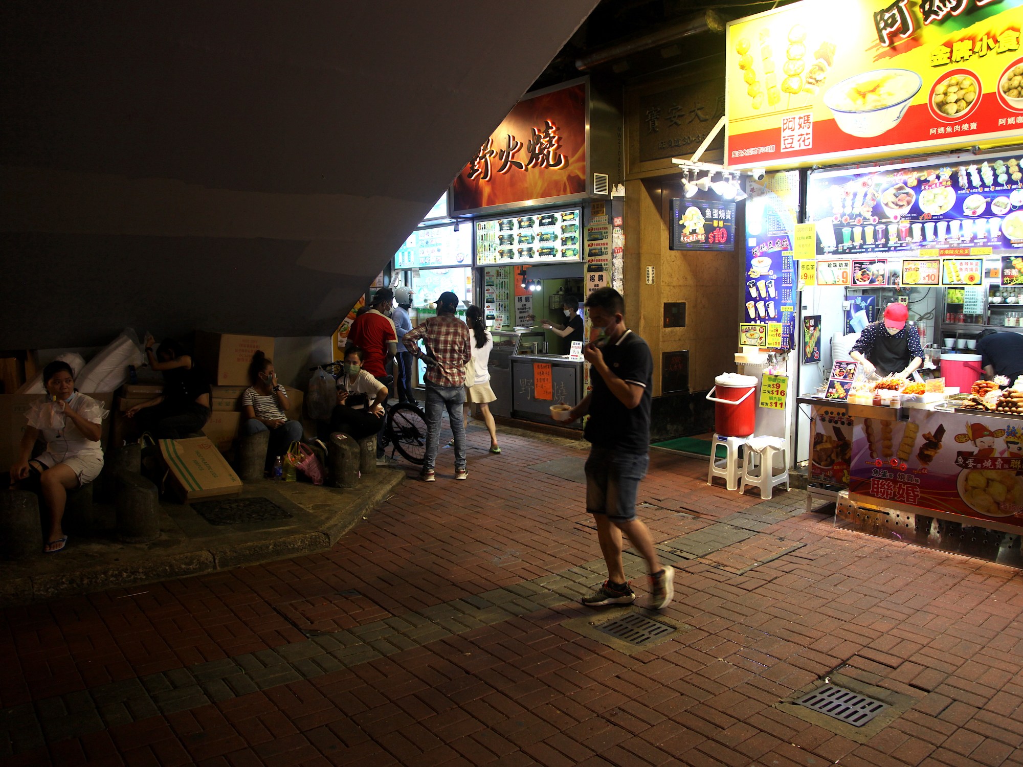 For Sunday evening streetside diners and revelers, these pillars have now become passable (if not exceptionally comfortable) seats, on which one can enjoy one’s spicy fish ball skewers, picked up fresh from the adjacent restaurants. Placement and spacing turns out to be nearly ideal for carrying on a conversation with one’s neighbor.